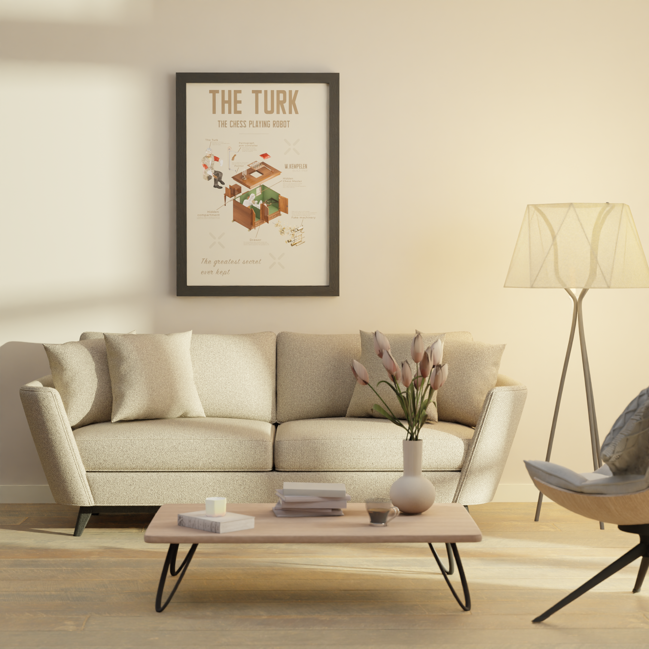 High quality framed print poster wall art of The Mechanical Turk, a chess playing robot from the 1700’s.